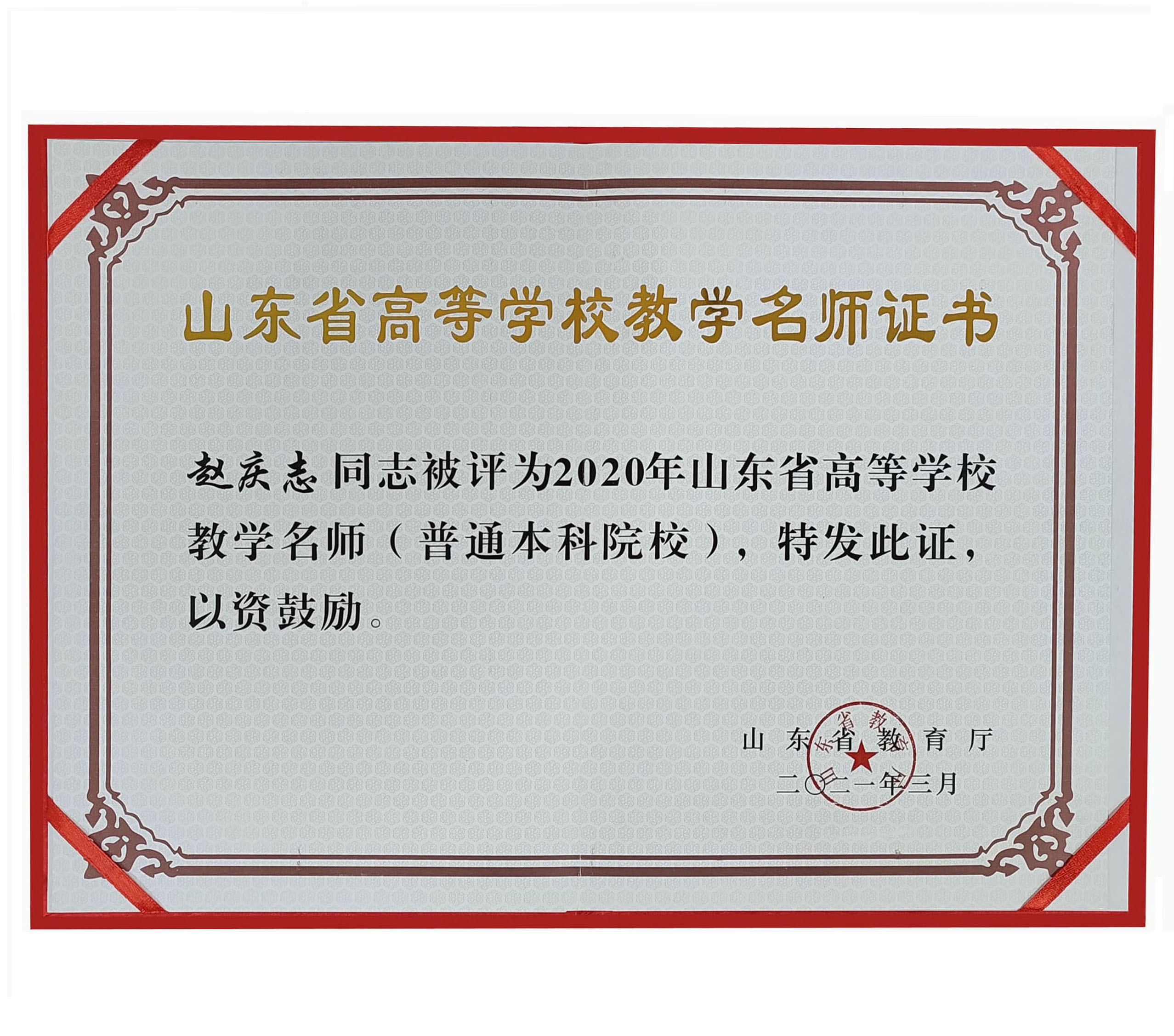 赵庆志,男,1962年生,山东省日照市人,南京航空航天大学工学博士,硕士研究生导师,曾获全国师德标兵、山东省高校十大师德标兵、山东省教学名师、山东省首届教书育人楷模、山东省高校优秀共产党员、山东省优秀教师等众多荣誉称号,现任青岛恒星科技学院机械工程实验教学示范中心主任。
