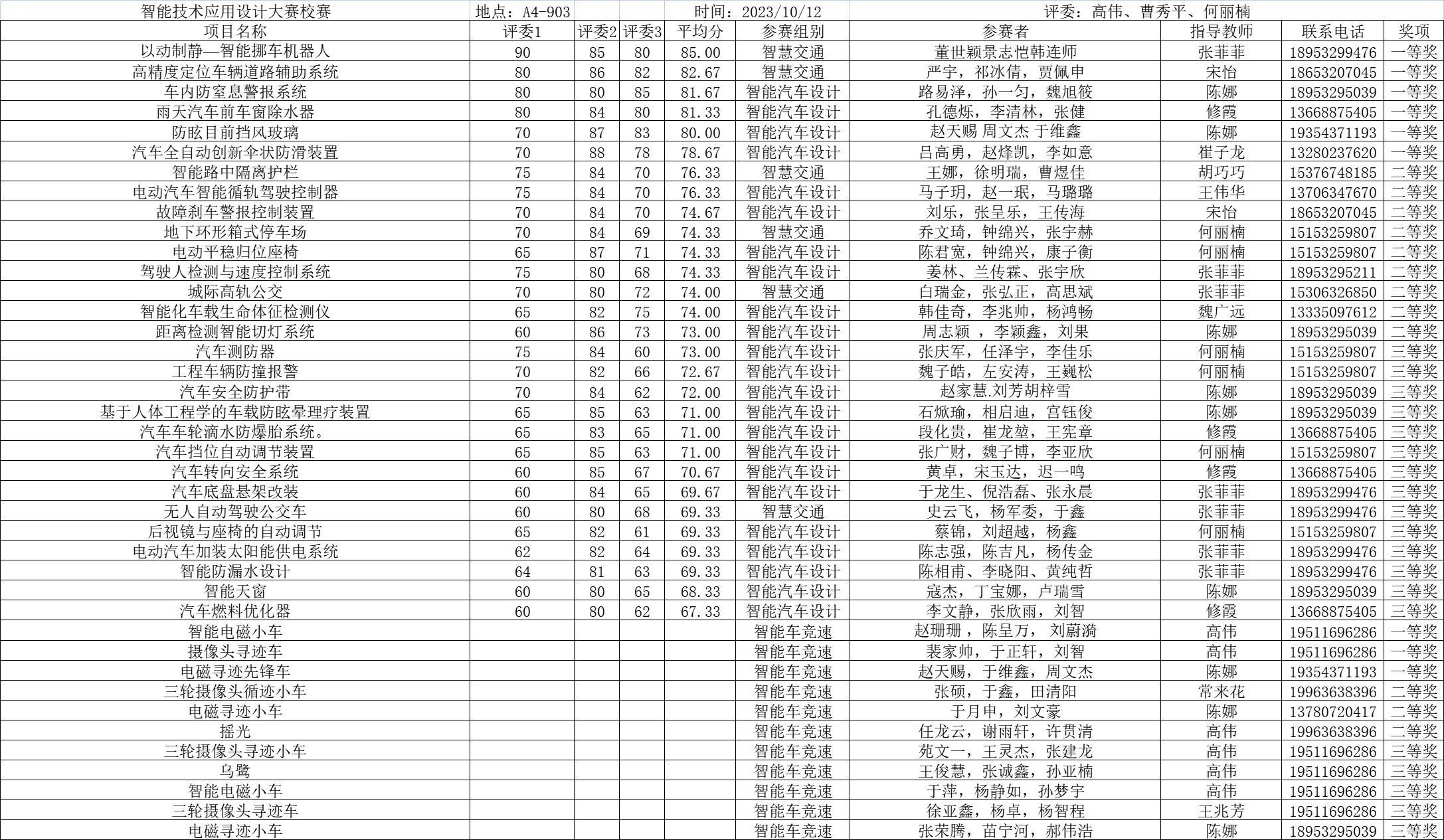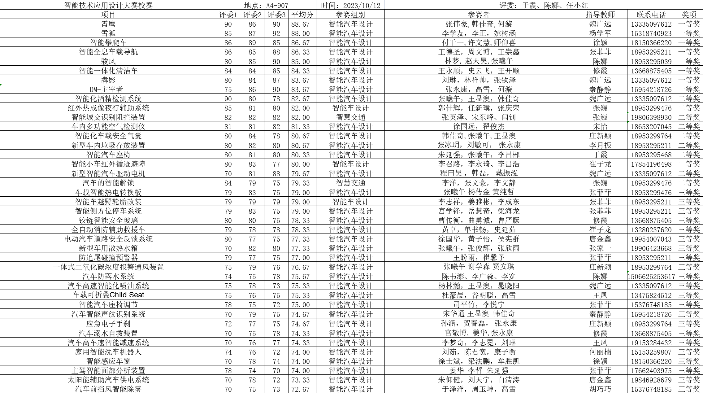 经过评委们的点评,讨论,本次大赛的结果如下: